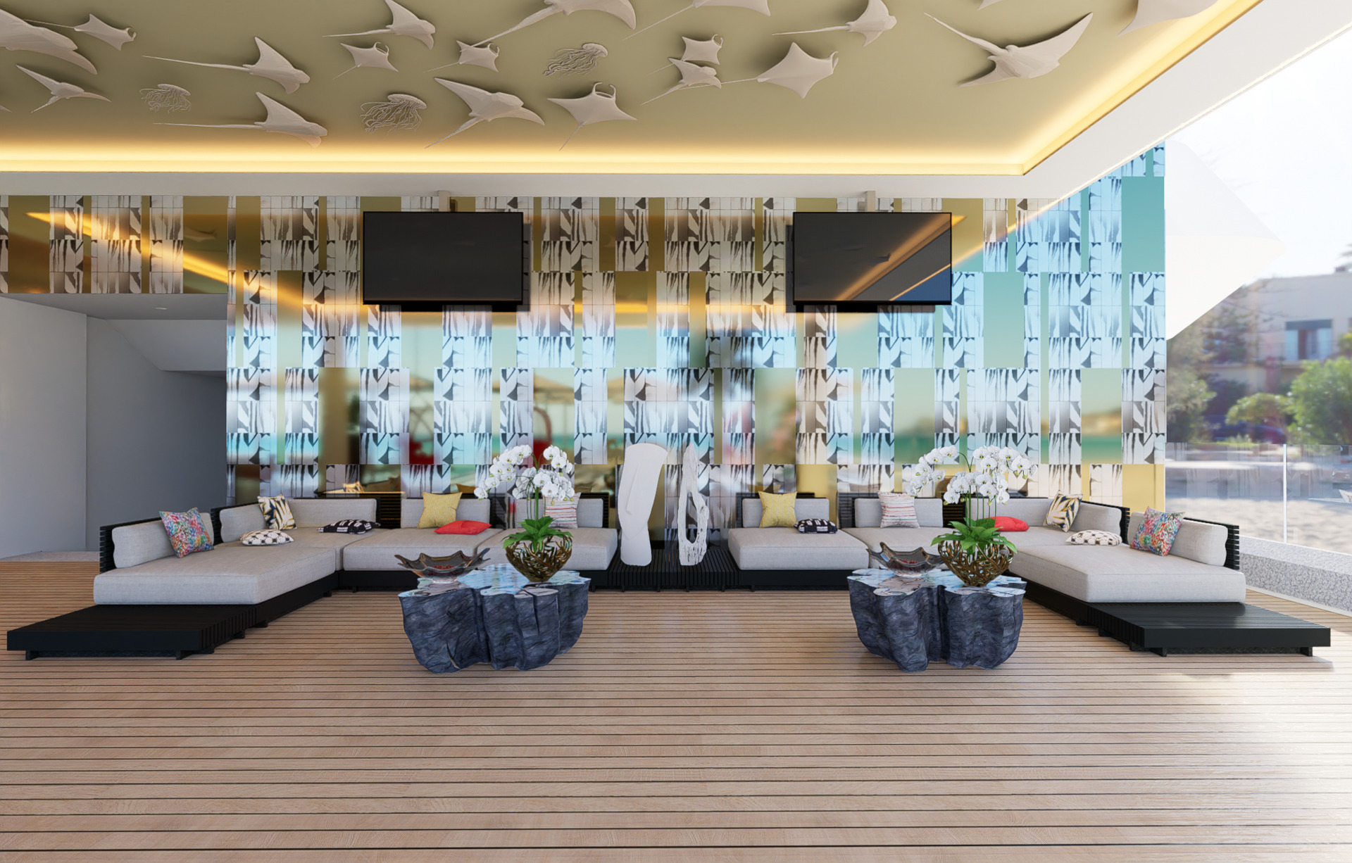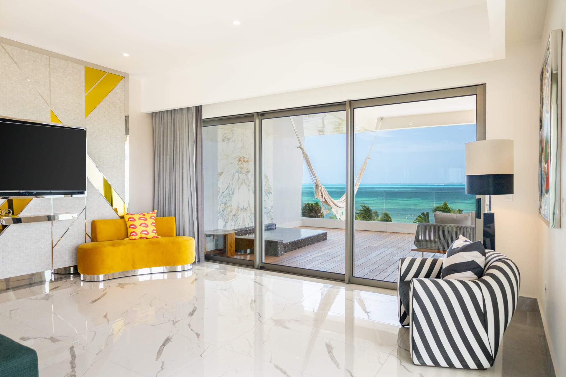 The 5 star accommodation Hotel Mousai Cancun Adults Only is located in the vicinity of a sandy beach. On the beach are beach towels available. The hotel is equipped with a 24h reception, a lobby bar, internet access, a lift, a boutique as well as par