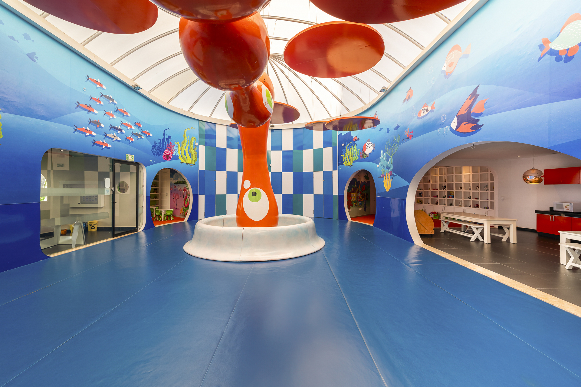 Sports & Leisure To keep your fitness up on holiday, there is a gym (open 24 hours a day) for guests to use. Special offers for all golf enthusiasts are available at your place of accommodation for the golf course approximately 16 km away. In the surrounding you can also try your hand for example at water aerobics. If you don`t want to miss out on training with a ball during your holidays, you`ll find a basketball court. During your holiday you can also take part in aerobics courses, in Zumba courses and in yoga courses. Also beach volleyball is offered at the hotel. In addition to 2 nearby tennis courts (hard court) there is also a tennis school and a tennis rental. A sauna and a wellness shower await you in the. The hotel also offers massages, beauty treatments and physiotherapies. Let yourself be pampered in the Hamam and find peace and quiet in the relaxation room. Spend some healthy and relaxing hours with hot stone therapy, hydrotherapy as well as brine baths. Infants can be looked after in the hotel`s own baby club. For older children the care takes place in the children`s club. There is a babysitting service in the hotel, so that adults can also find some time to relax. Furthermore there is a youth club. In terms of adult entertainment, shows are organized in the evening and there is a games room available to use. Some of the sports are already included in the price.