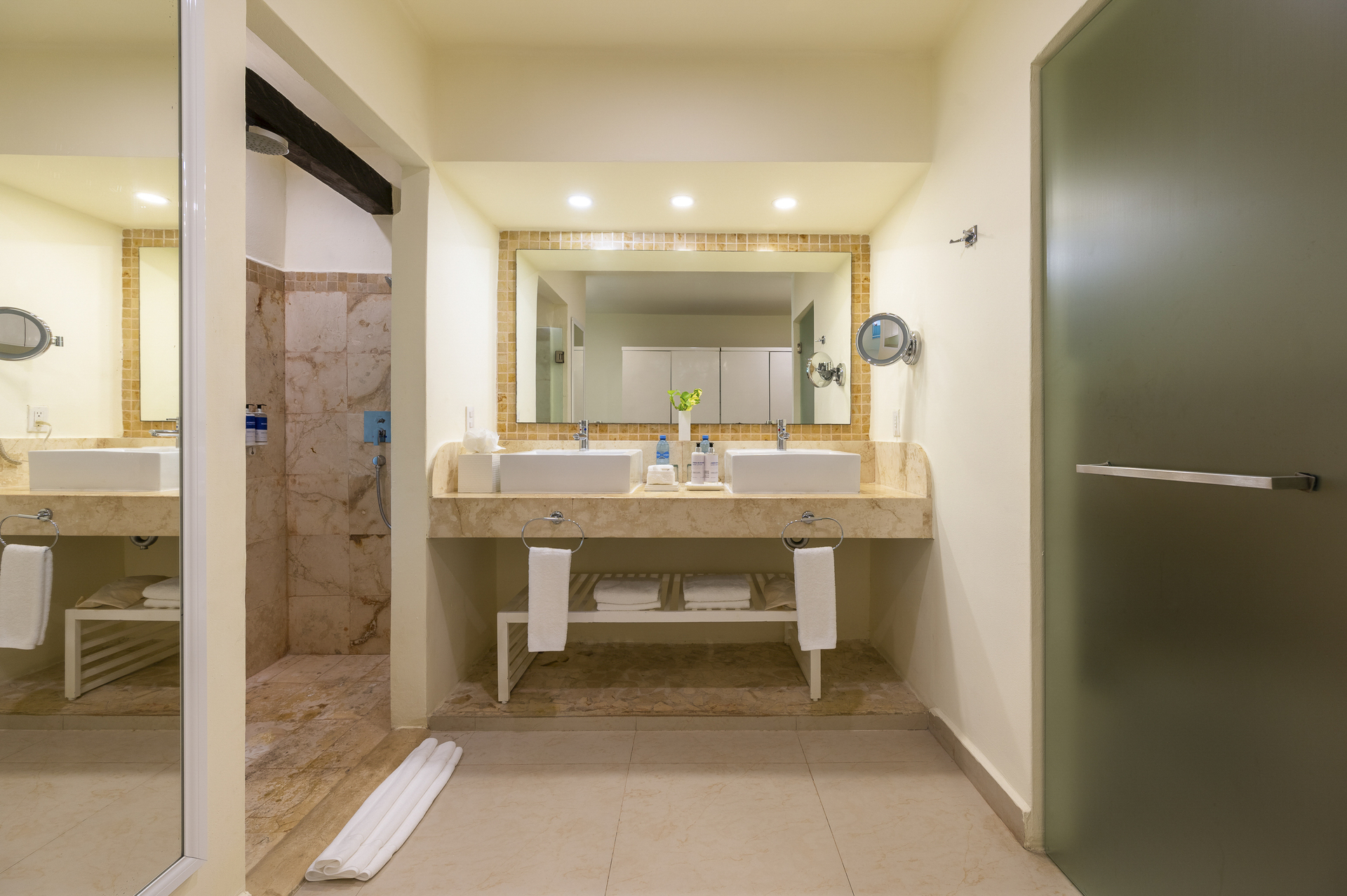 Just a few meters from the hotel`s own sandy beach lies the hotel IBEROSTAR SELECTION RIVIERA CANCUN. The nearest restaurants and bars can be reached in a few minutes on foot. The old town is around 12 km away. The nearest shops you can reach within around 3,4 km, a supermarket is around 5 km away. The beach is patrolled by a lifeguard. Here, there are sun loungers, cushions, sun umbrellas and beach towels available. The seasonally air-conditioned hotel is equipped with a 24h reception (check-in is possible around the clock), a lounge, a lobby bar, Wi-Fi, internet access, 5 lifts, a kiosk, a boutique, cash machine, a hairdresser, a jacuzzi, a first aid kit as well as parking spaces (limited). In the outdoor area you will find a garden as well as a supervised pool (open all year), where sun loungers, sun umbrellas and pool towels are available for free. For children there is also a separate children's pool with a non-swimming area. Furthermore, you can relax outdoors on a roof terrace. You can store your valuables in the safe, and your luggage in the hotel`s storage room. In addition, the hotel IBEROSTAR SELECTION RIVIERA CANCUN is video-monitored 24h a day. For very young guests, kid`s chairs, highchairs and cots can be provided. For the smallest children prams can be rented in the hotel. There is also a laundry and ironing service. Ironing equipment can also be borrowed at the hotel. For your comfort, in addition to the concierge service the hotel page will ensure you are looked after. If necessary, you can contact the medical centre at any time. Guests at the accommodation can get a wake-up call from the hotel personnel. The energy supply is 220 and 110 Volts. For conventions and other business meetings, the hotel offers a conference area with a total of 250 seats, a reception, tables, internet access as well as a catering service. A photographer can also be ordered from the hotel for business events. At the hotel reception, tickets are offered for excursions in the area. For guests on their honeymoon, the hotel has special offers such as special honeymoon packages, romantic dishes in the restaurant or sparkling wine. In your hotel, a lot of focus is placed on sustainability. This includes waste segregation in the rooms, the hotel`s own recycling bins, the provision of soap and shampoo dispensers, organic food and ecological meals, a central room air-conditioning and environmentally-friendly cleaning. For water and gas may incur extra charges at the hotel. The hotel requires that all guests pay a deposit upon arrival. Credit cards are not accepted at the hotel. Due to its barrier-free facilities , such as an automatic hotel door, barrier-free entrances and wheelchair accessible rooms, the hotel is also suitable for wheelchair users.