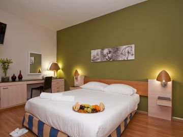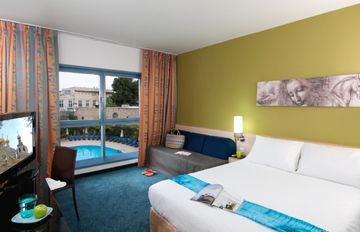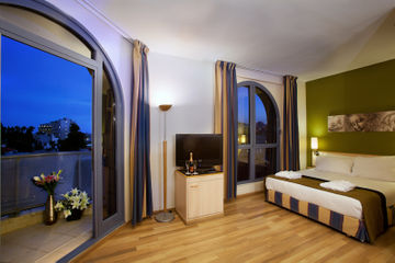 Ubicado en una calle lateral junto a una vía principal, con fácil acceso al casco antiguo y a cierta distancia del centro de la ciudad. Las habitaciones son pequeñas, tienen vistas de la ciudad. El doble acristalamiento nos asegura que las habitaciones sean tranquilas y atractivas, tienen un esquema de color pastel que las hacen atractivas y acogedoras.El comedor del hotel es grande y está decorado en tonos cálidos. Está situado debajo del vestíbulo y sirve especialidades locales.Es un edificio muy grande, de piedra blanca y de diseño moderno.El vestíbulo es grande y está decorado con suelos de mármol y en tonos azules. Lleva a un salón encantador y a un bar muy tranquilo. Éste es un hotel de 4 estrellas, considerado una propiedad de primera clase. Es ideal para grupos e individuos que buscan la mejor calidad que un hotel de primera clase les puede proponer.