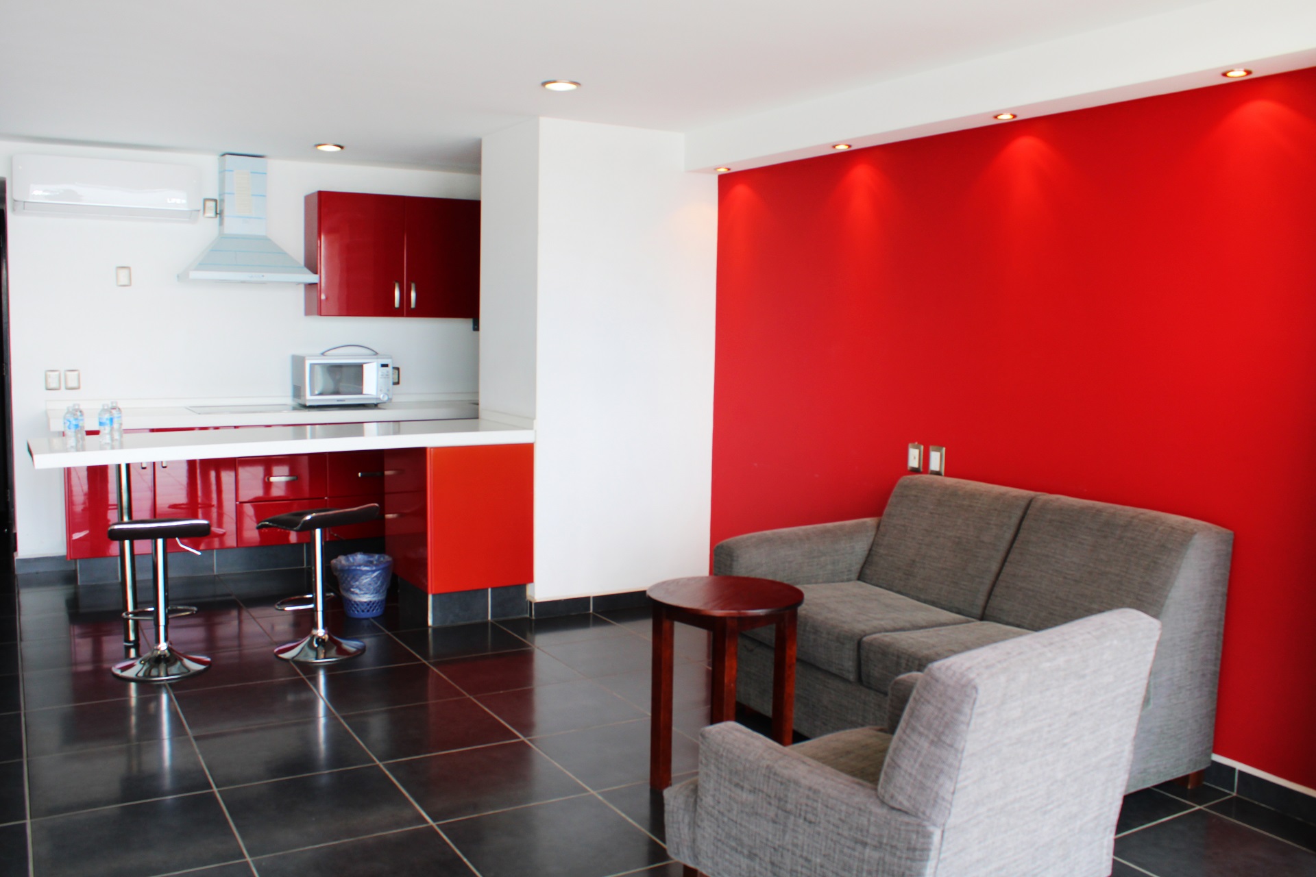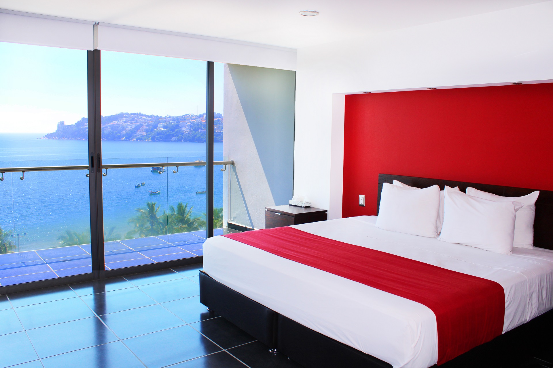 About 50 m from a beach is located the aparthotel Ramada By Wyndham Acapulco Hotel & Suites. The nearest bars and restaurants can be found at a distance of around 80 m. The city centre is around 1 km away. A supermarket is around 300 m away. On the beach are beach towels available. The air-conditioned, GPS-verified hotel is equipped with a 24h reception (check-in is possible around the clock), a lobby, Wi-Fi, internet access, 2 lifts, a first aid kit, parking spaces as well as a TV lounge. In the outdoor area of the property you will find a pool (open all year), where sun umbrellas and pool towels are available for free. There is also a children's pool with a non-swimming area. Furthermore, you can relax outdoors on the sun terrace. Your valuables can be stored in the hotel safe. In addition, the hotel Ramada By Wyndham Acapulco Hotel & Suites is video-monitored 24h a day. There is also a laundry service available at an additional cost to customers as well as an ironing service. Ironing equipment can also be rented at the hotel for a fee. For your comfort the hotel page will ensure you are looked after. The energy supply is 110 Volts. Dogs are the only pets allowed in the hotel (on request). For guests on their honeymoon, the hotel has special offers such as a romantically-decorated room, rooms with a particularly romantic location and view, romantic dishes in the restaurant, champagne, a present or a basket of fruit in the room. In your hotel, a lot of focus is placed on sustainability. This includes among others the hotel`s own recycling bins. That is why the hotel Ramada By Wyndham Acapulco Hotel & Suites was also awarded a sustainability certificate. American Express, Euro/Master Card and Visa are accepted as means of payment. Due to its barrier-free facilities , such as a sliding door in the entrance area, a hotel door that can be opened manually, barrier-free entrances, wheelchair accessible rooms and wheelchair-accessible bathrooms, the hotel is also suitable for wheelchair users.