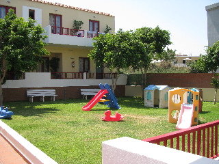 Este complejo es ideal para todos aquellos que busquen unas tranquilas vacaciones rodeados de un paisaje apacible y tradicional. Esta situado en una zona excelente para familias y parejas. En este complejo, lo que mas destaca son la amabilidad y la hospitalidad de su atento personal. Muchos huespedes repiten todos los anos, para poder disfrutar del trato afable y de una relajada atmosfera. Cuenta con estudios para 2-4 personas y con apartamentos para 2-5 personas. En el edificio hay un hall de entrada con recepcion abierta todo el dia y servicio de cambio de divisa. Entre otras instalaciones, cuenta con cafeteria, quiosco, un pequeno supermercado, tiendas, peluqueria, bar, sala de television, restaurante climatizado y con sillas altas para los ninos, comedor y sotano para guardar bicicletas, ademas de servicio de alquiler de las mismas. Se tiene en cuenta a los mas pequenos, para los cuales hay un parque, asi como un club infantil. Para completar las prestaciones, se le ofrecen servicio de habitaciones, de lavanderia y de atencion medica (todos de pago). Tambien dispone de lavadoras (con cargo adicional) y aparcamiento.Este complejo esta situado en la parte norte de Creta, en el ce